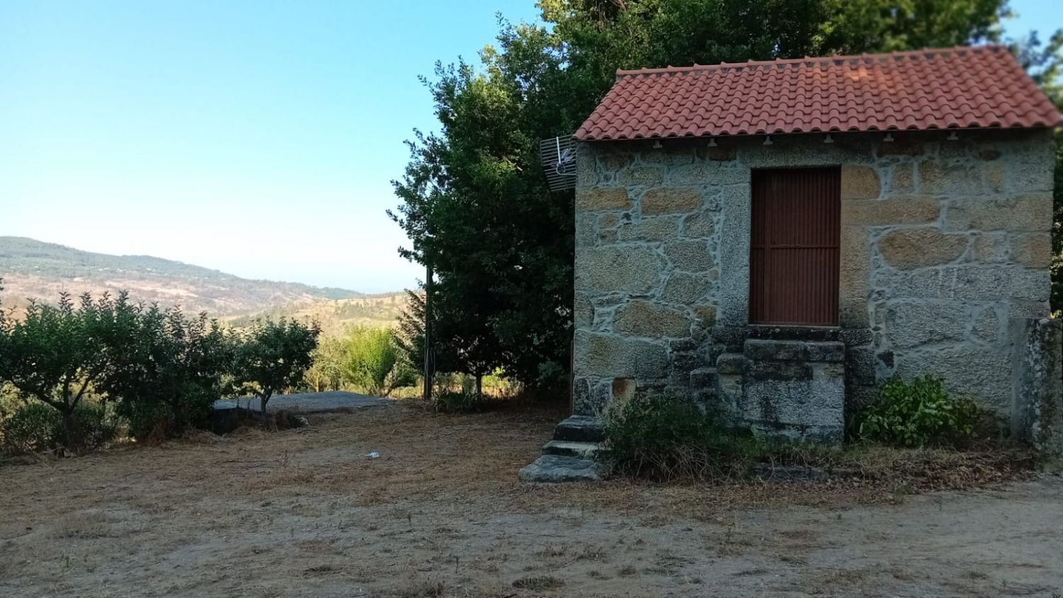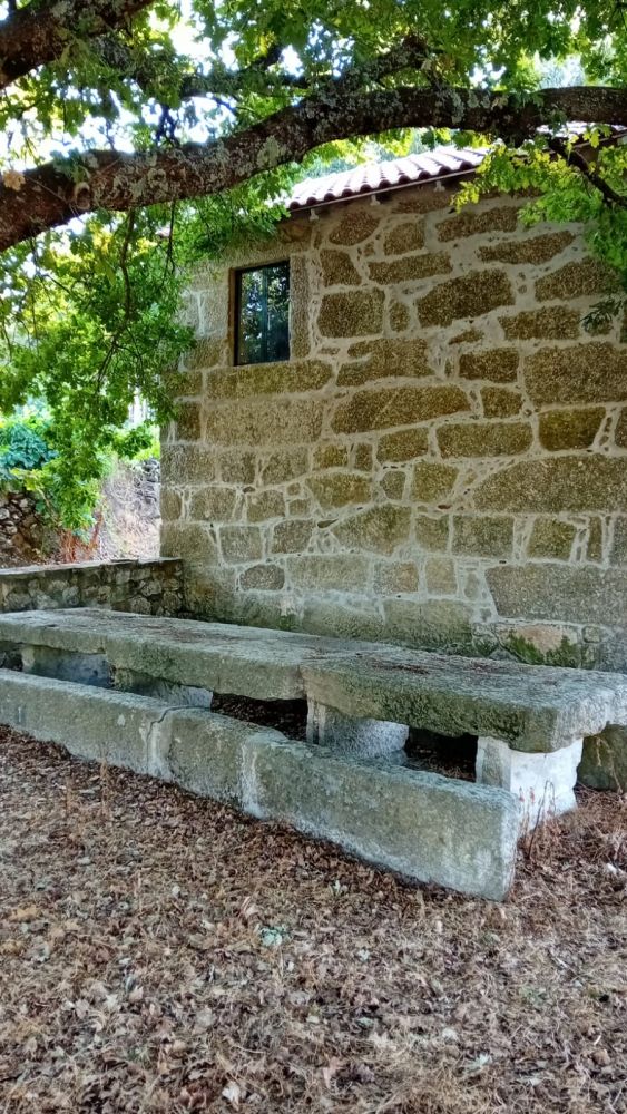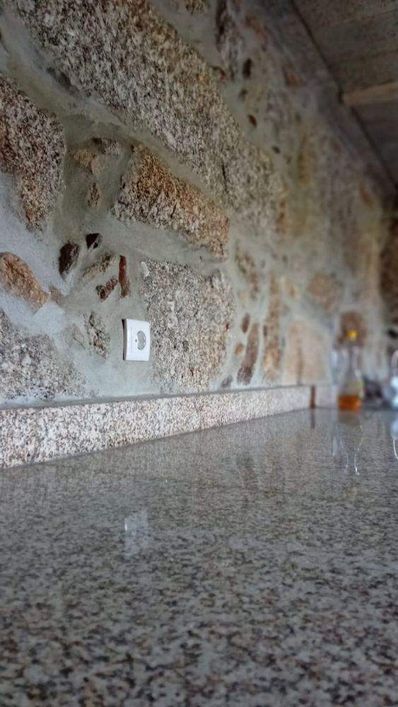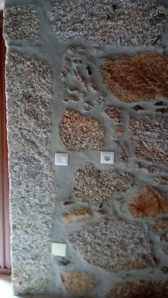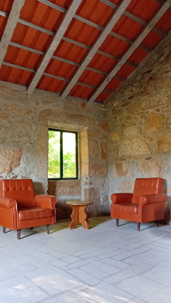 * Uma casa de pedra recuperada com cerca 64m2 (de dois andares) com eletricidade, pois existe um poste elétrico na quinta.